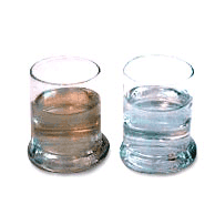 Vasakul näete, mis jäi järgi tavalise kraanivee puhastamisel. Paremal on kristallselge, algupärane, ultrapuhas vesi pärast puhastusprotsessi.